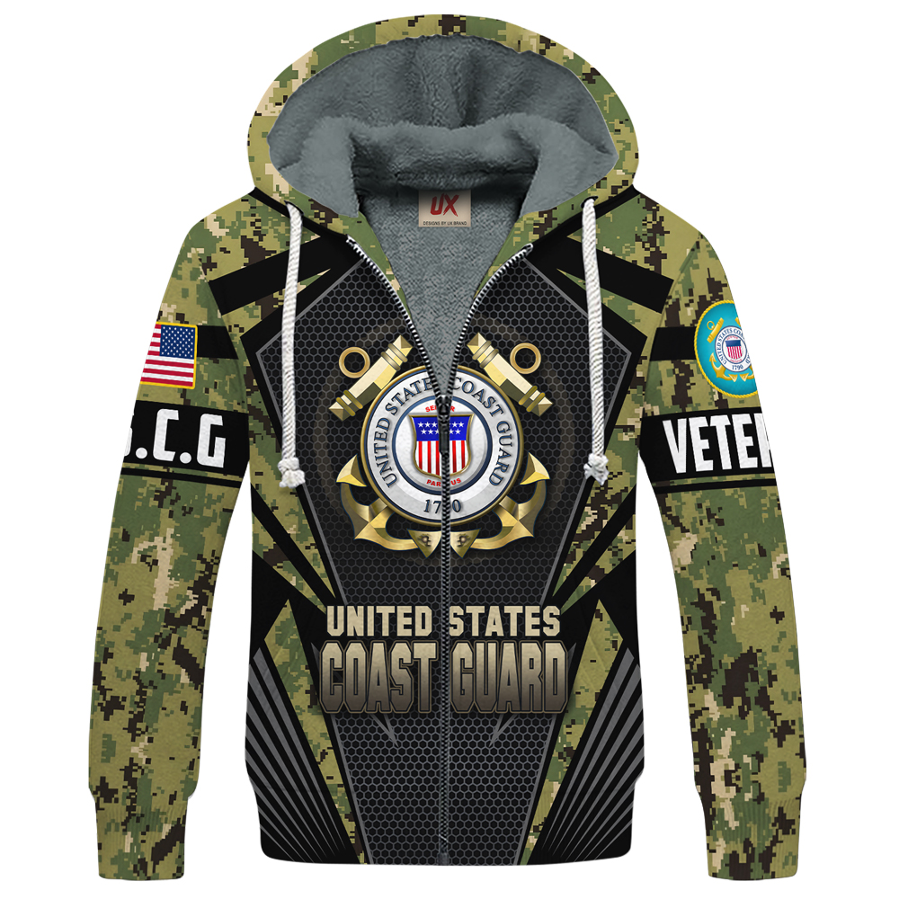 VETERAN UXVET27-CG Premium Heavy Fleece Zip Hoodie